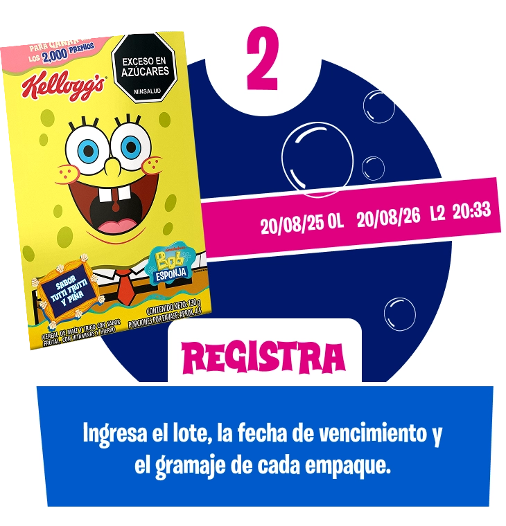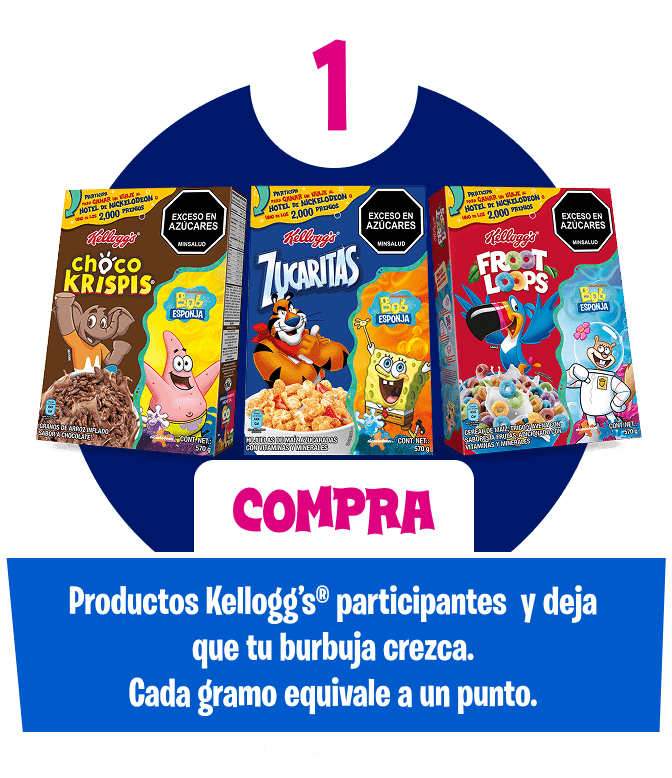 ¡Los Paketikos valen el triple!Al registrar empaques Kellogg’s® participantes tu burbuja crecerá mientras acumulas puntos. Cada gramo equivale a un punto.